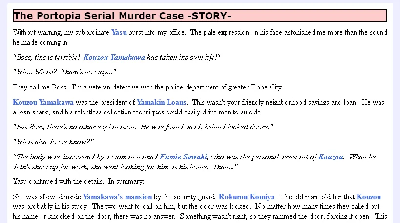 A veces conviene bajarse del tren bala de los shooters, los RPG de acción o los “yo contra el barrio”, y perderse en rarezas que huelen a polvo y nostalgia digital. En mi caso, caí de bruces en una joyita perdida entre los disquetes del Japón de los 80: Portopia Renzoku Satsujin Jiken, o como lo llamaríamos por aquí, El caso de los asesinatos en serie de Portopia; hace unos días cuando hablando del Before Crisis Final Fantasy VII una precuela perdida que solo sobrevivió en un teléfono japonés, descubrí que Yuji Horii al crear Portopia, no solo revolucionó las bases de un nuevo género, sino que además creó la primera visual novel, por lo que yo ya sabía de antemano que no podía dejar escapar esta obra tan pionera para su época.